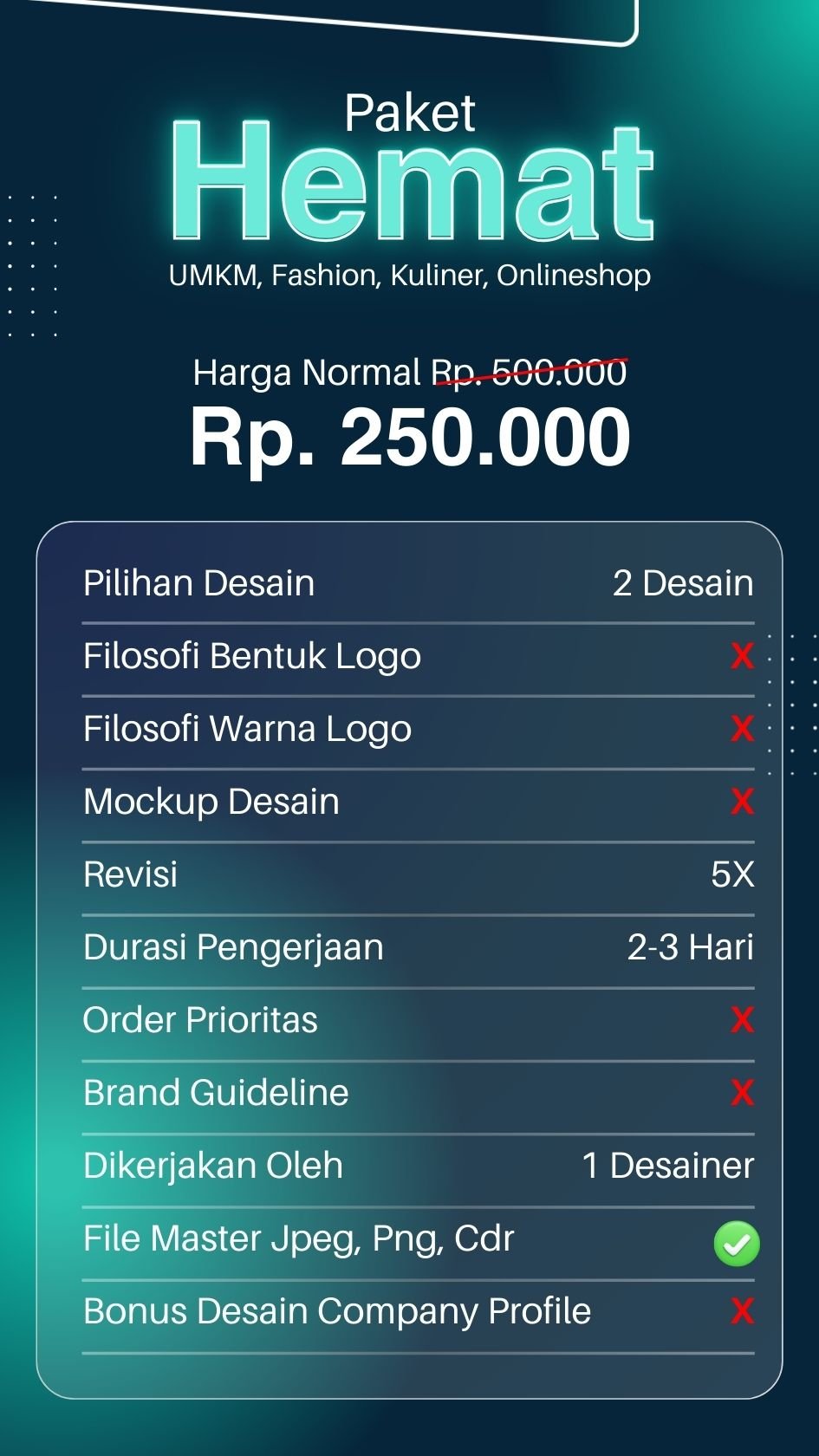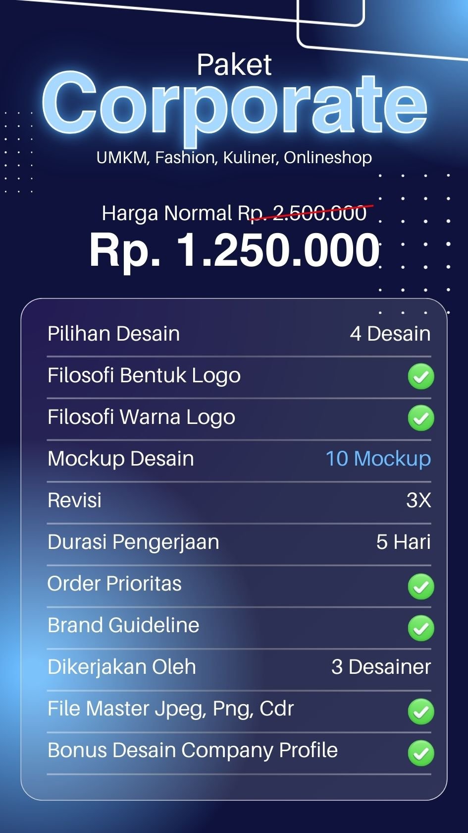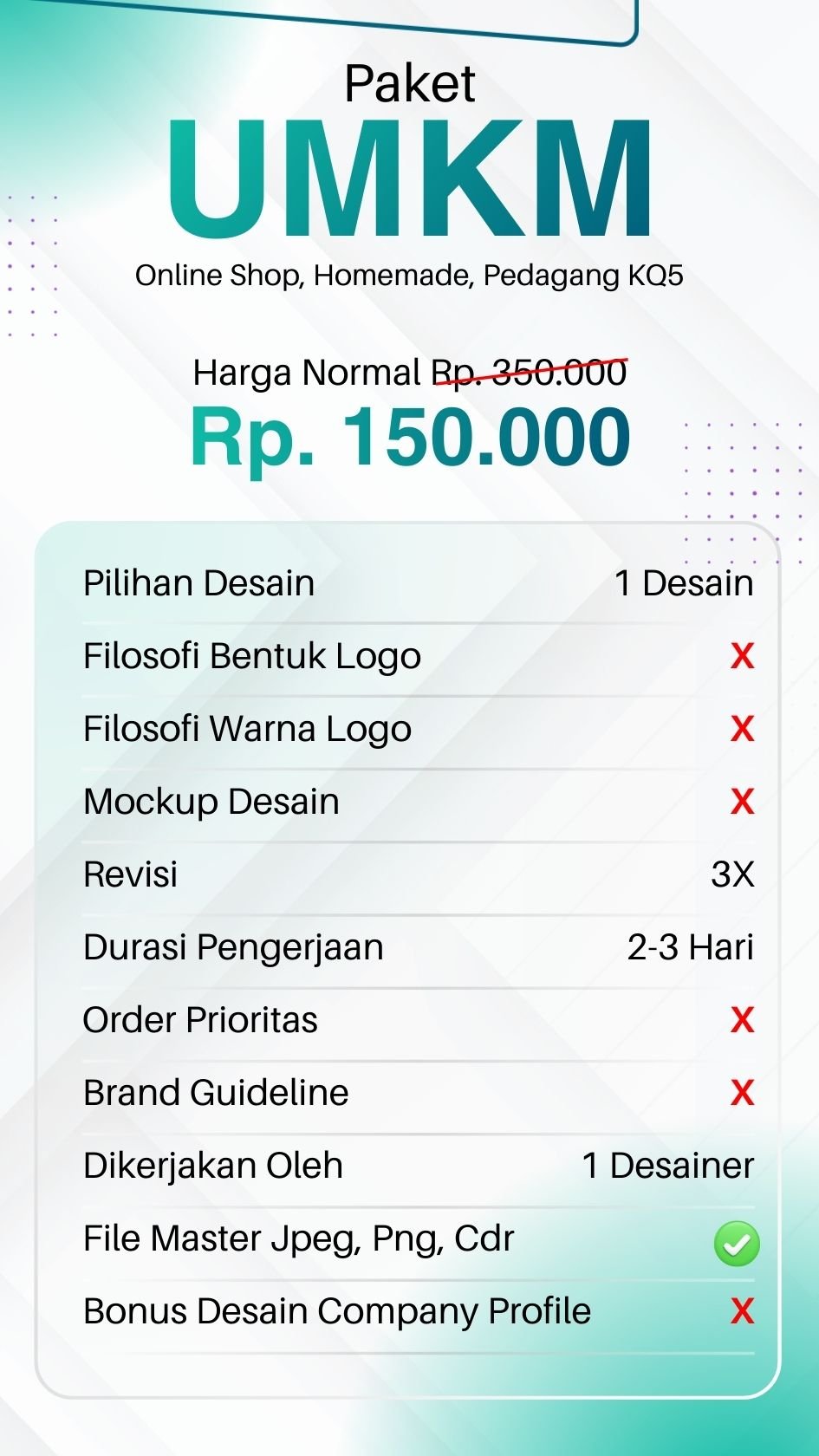 Hasil desain dijamin original bukan plagiarisme, lisensi dan hak cipta sepenuhnya diserahkan kepada klien.